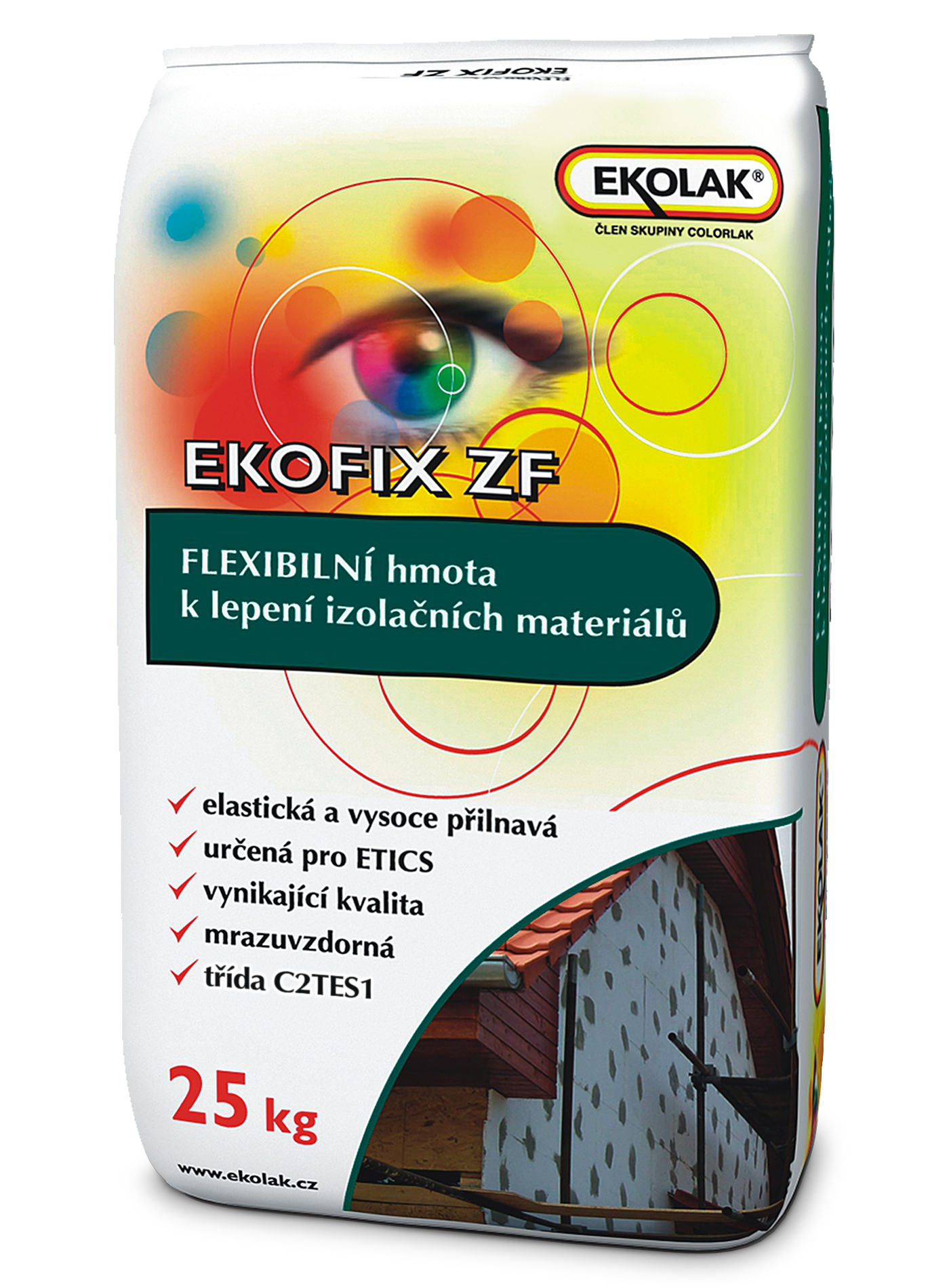 EKOFIX ZF is a high quality special frost-resistant adhesive compound designed to bond insulating materials for contact thermal insulation of buildings (ETICS). It is used to bond polystyrene boards and mineral fibre boards to flexible and less absorbent substrates, as well as chipboard, cement-sand, wood-based boards and grown wood (planks).