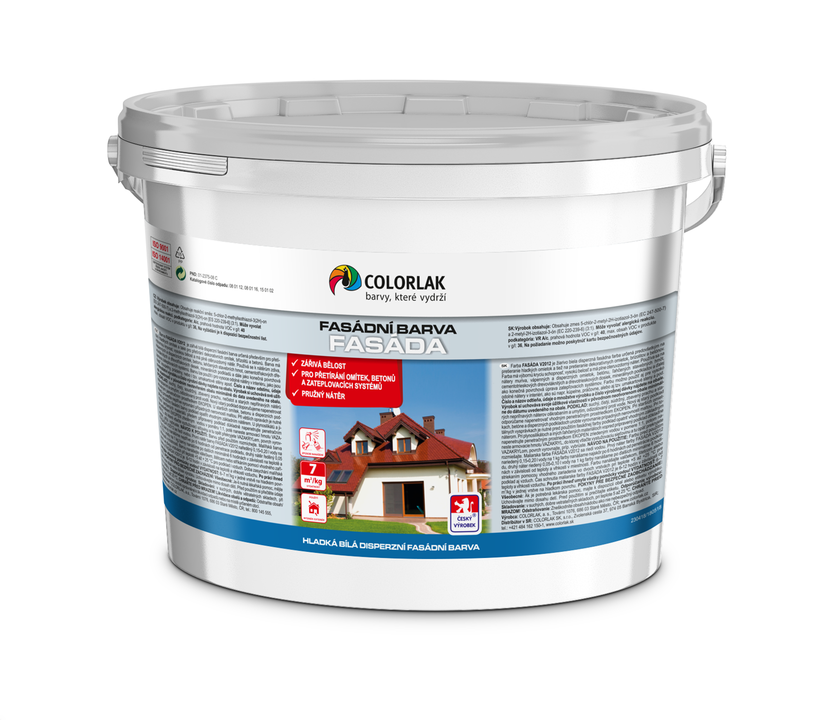 PROEXTERIÉR FASÁDA is a bright white dispersion façade paint designed especially for overcoating of smooth and decorative plasters as well as for overcoating of brizolit and concrete. PROEXTERIÉR FASÁDA has excellent hiding power, high whiteness and a fully abrasion-resistant coating. It is also used for painting of masonry, lime, lime-cement and dispersion plasters, concrete, lightweight building materials, cement-particleboard, fibreboards and chipboards, mineral substrates and subsequent maintenance of thermal insulation systems. PROEXTERÉR FASÁDA can also be used for highly durable interior coatings, such as in bathrooms, laundries or even high-pressure laminate.